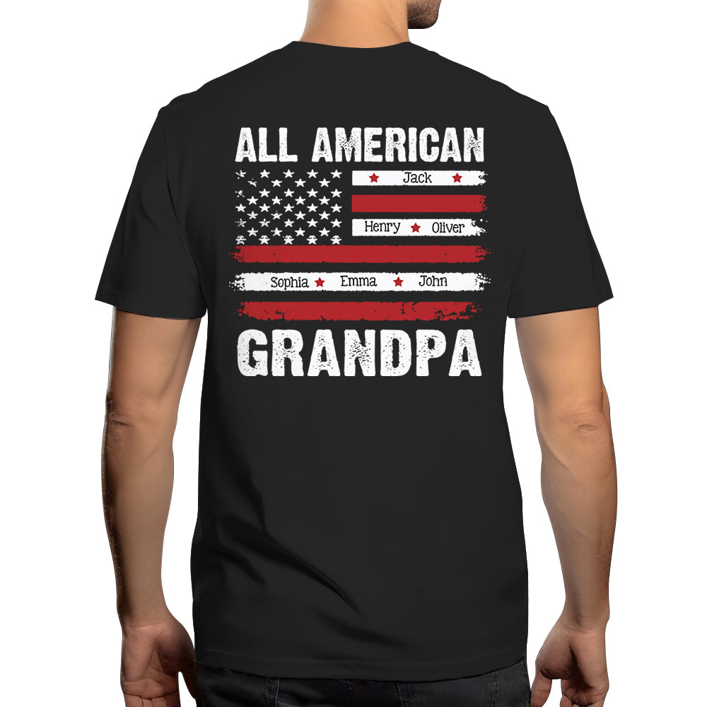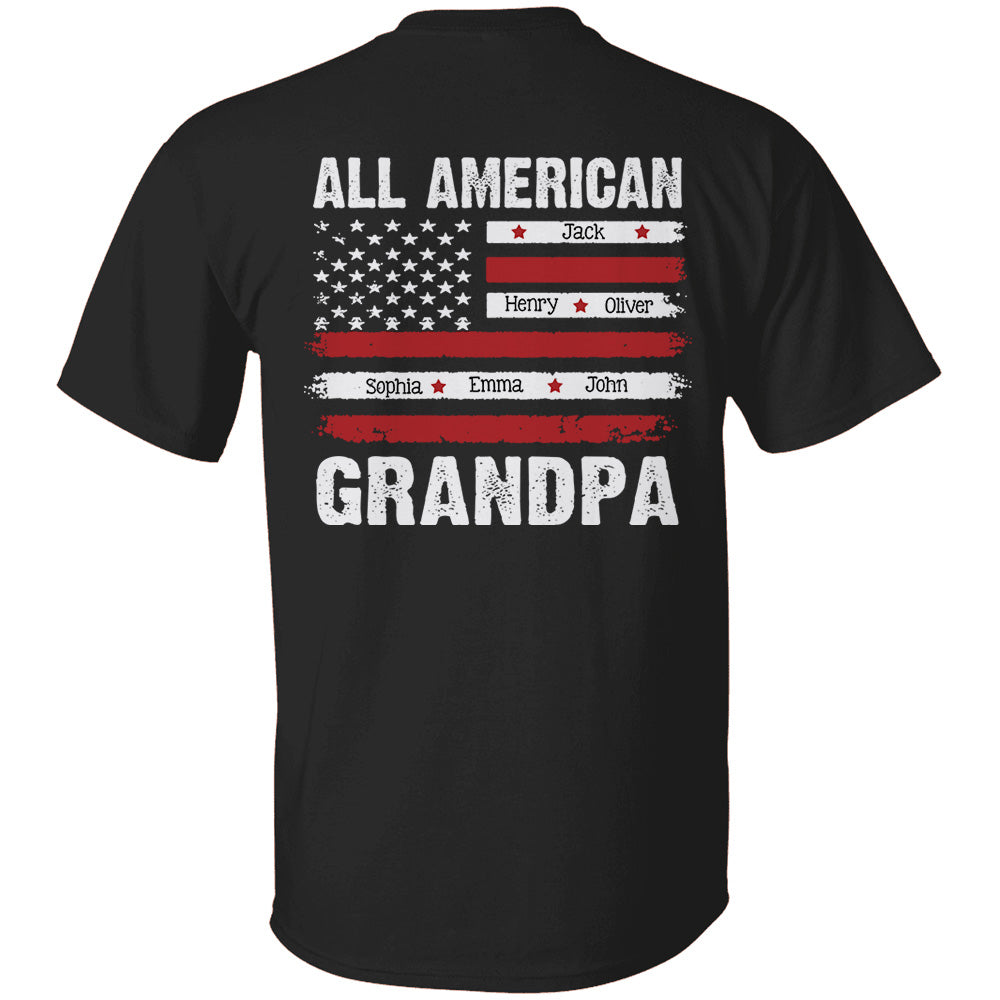 All American Grandpa T Shirt Personalized Family Names Gift Tee