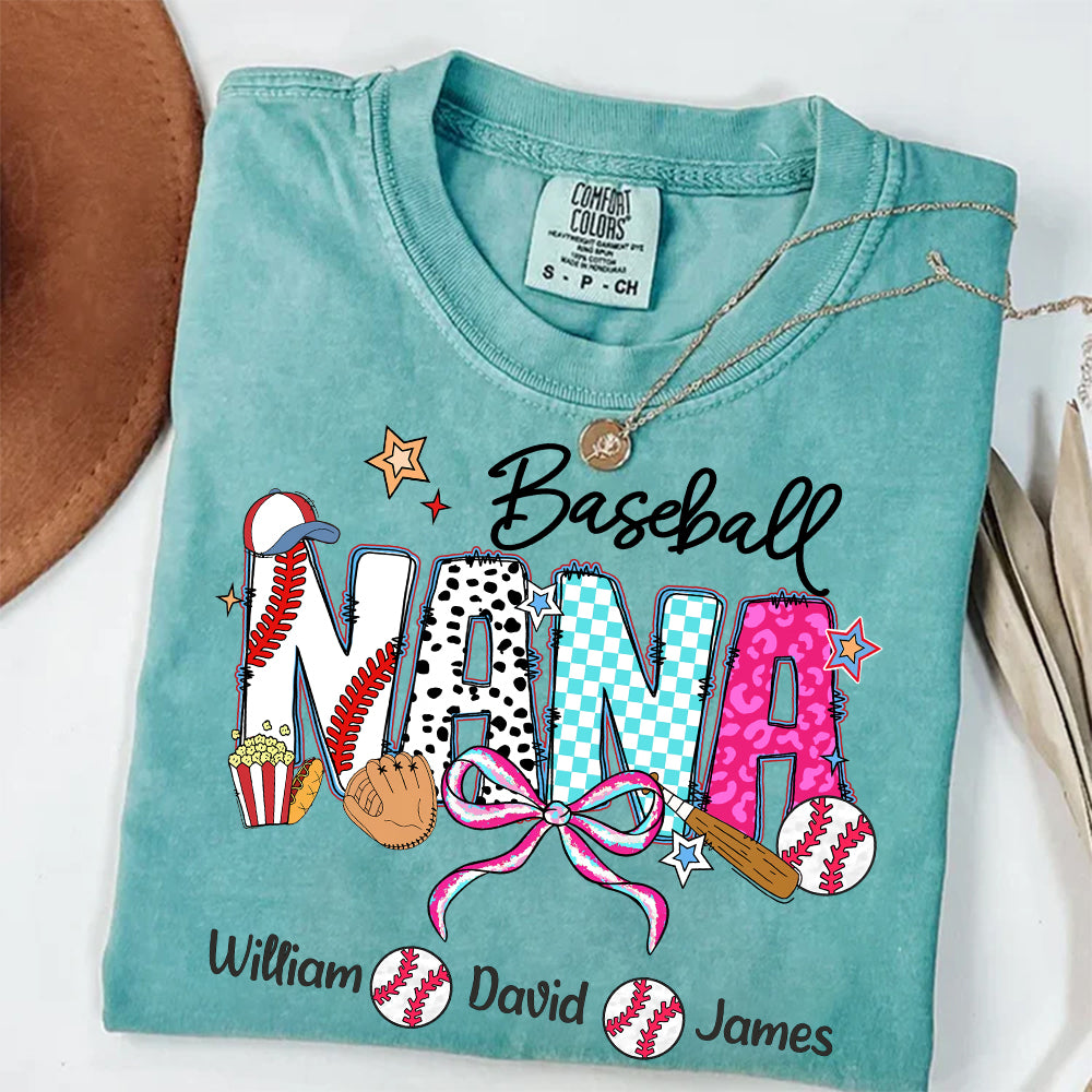 Baseball Nana Shirt Personalized Gift for Grandma with Kids Names Tee